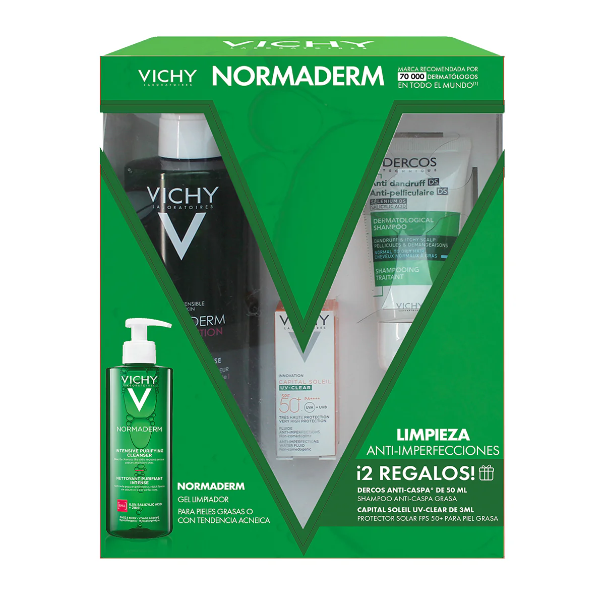 KIT-NORMADERM INTENSIVE PURIFYING CLEANSER 400ML+DERCOS ANTI DANDRUFF 50ML+CAPITAL SOLEIL UV-CLEAR SPF50+ 3ML