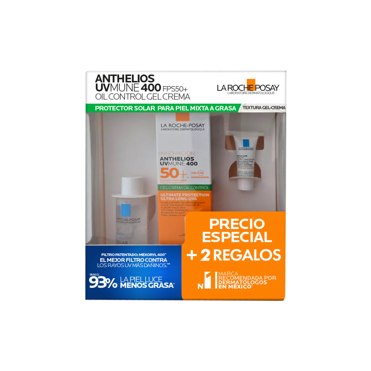 KIT-ANTHELIOS UV MUNE 400OIL CONTROL GEL-CREMA 50ML+EFFACLAR DUO SERUM 3ML+AGUA MICELAR 50ML