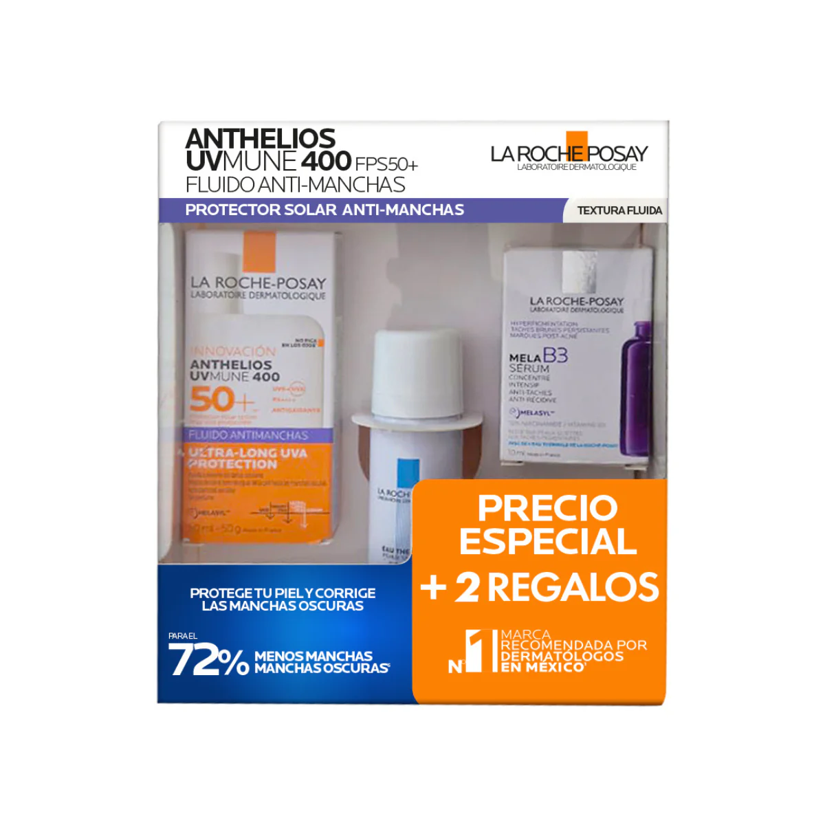 KIT-ANTHELIOS UV MUNE 400 ANTI-MANCHAS 50ML+AGUA TERMAL 50ML+MELA B3 SERUM 10ML