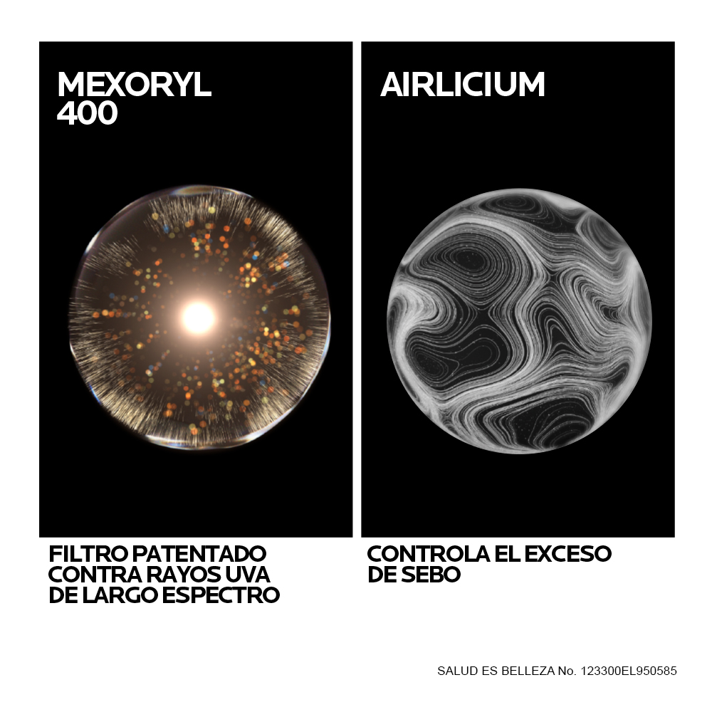 Formulado para pieles grasas, protege contra el daño celular profundo causado por la luz solar extrema. Es resistente al agua y al sudor, anti-escozor de ojos y apto para pieles sensibles. Utiliza el filtro UV Mexoryl 400 para proteger las células contra los rayos UVA ultralargos. Estos rayos representan el 30% de los rayos UV y son imperceptibles pero dañinos. Además, la tecnología Netlock proporciona una protección UVB+UVA+UVA ultralarga, ultrarresistente, invisible y de alta tolerancia.