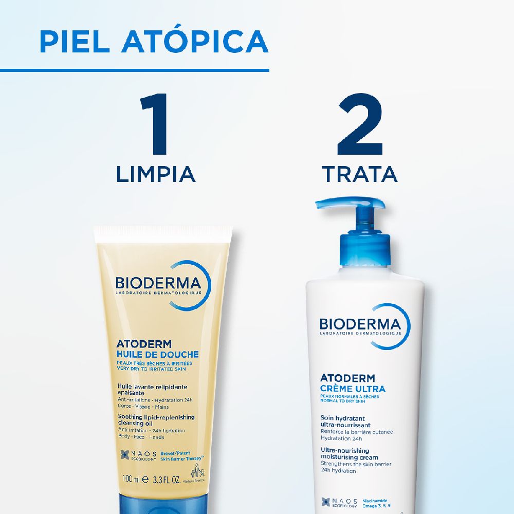 Es un aceite de ducha que limpia suavemente las pieles sensibles secas, muy secas o irritadas.