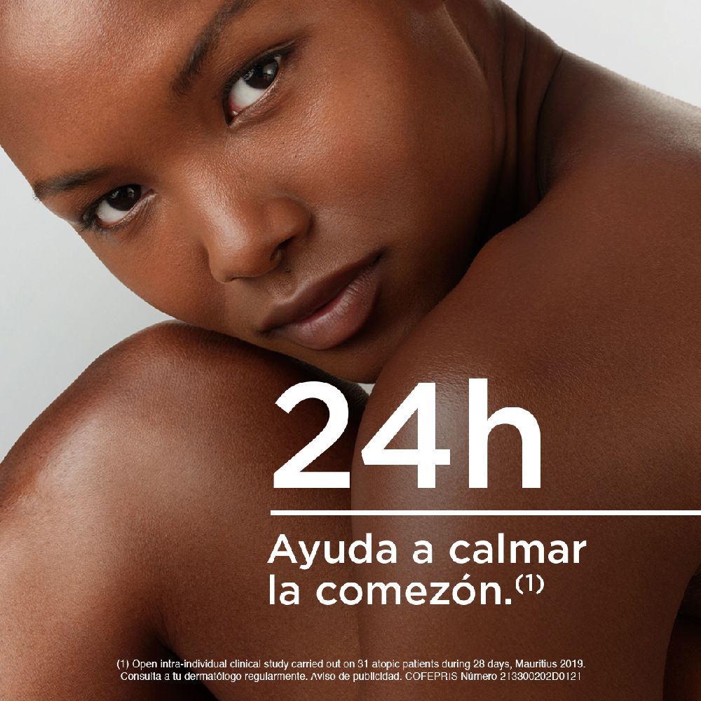 El complejo patentado Skin Barrier Therapy ™ limita la adhesión de ciertas bacterias (Staphylococcus aureus) a la superficie de la piel. Estas bacterias pueden agravar la sequedad de la piel.
