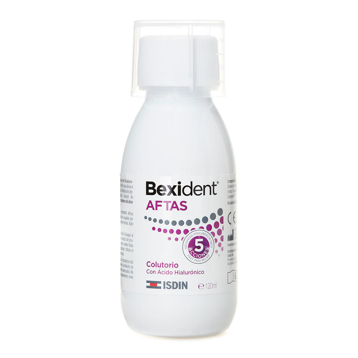 Bexident AFTAS con su tecnología Advanced Hyalurofilm Tech aporta 5 acciones. 1- Crea un film que alivia el dolor 2- Protege frente a agentes externos 3- Hidrata los tejidos dañados 4- Acelera el proceso natural de cicratización 5- Aporta un alivio rápido y duradero del dolor desde la primera aplicación.