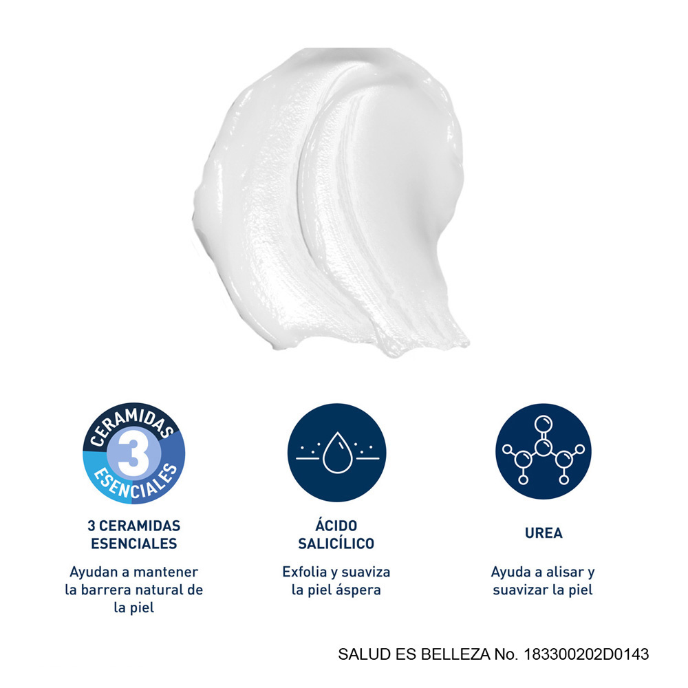 Fórmula que exfolia gentilmente la piel, mientras la hidrata y restaura la barrera de la piel. Con 3 ceramidas esenciales, Ácido Salícilico y 10% de Urea.