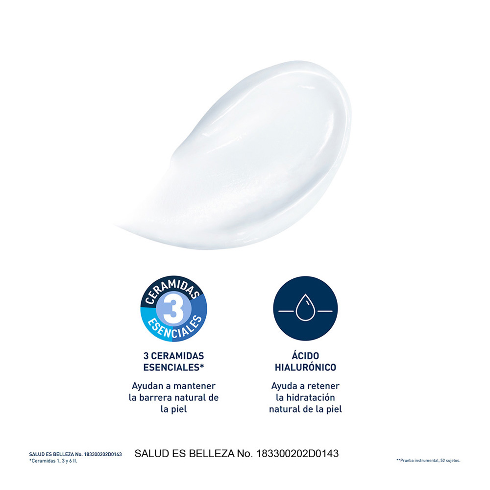 Desarrollada junto con dermatólogos, ofrece 24h de hidratación gracias a su tecnología patentada MVE. Su fórmula contiene ácido hialurónico. CeraVe ayuda a restaurar la barrera natural de la piel gracias a sus 3 ceramidas esenciales.
