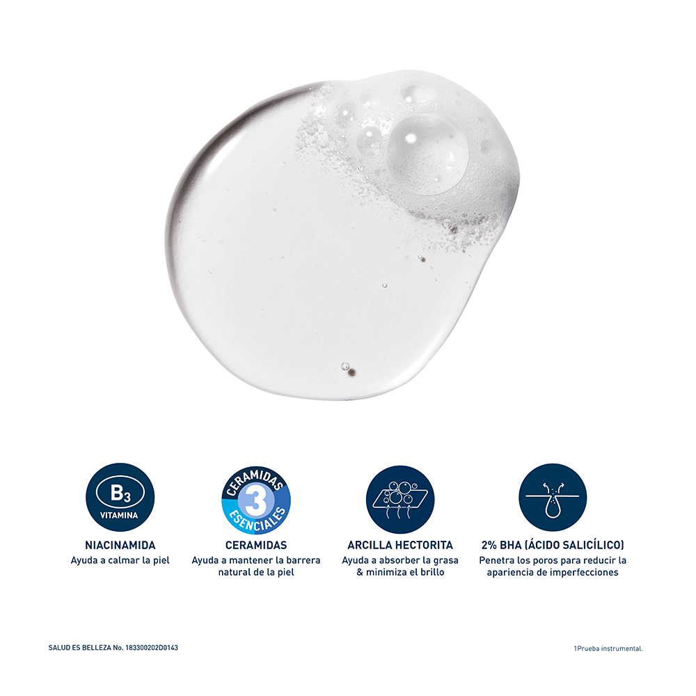 No reseca la piel. Desarrollado conjuntamente con dermatólogos, formulado con ácido salicílico, arcilla purificante y 3 ceramidas esenciales ayudando a prevenir nuevos brotes mientras mantiene la barrera cútanea protegida.