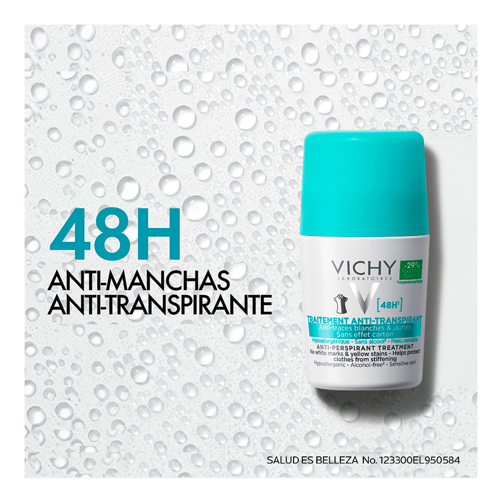 Tratamiento anti-transpirante 48 horas roll-on. Sudoración intensa.