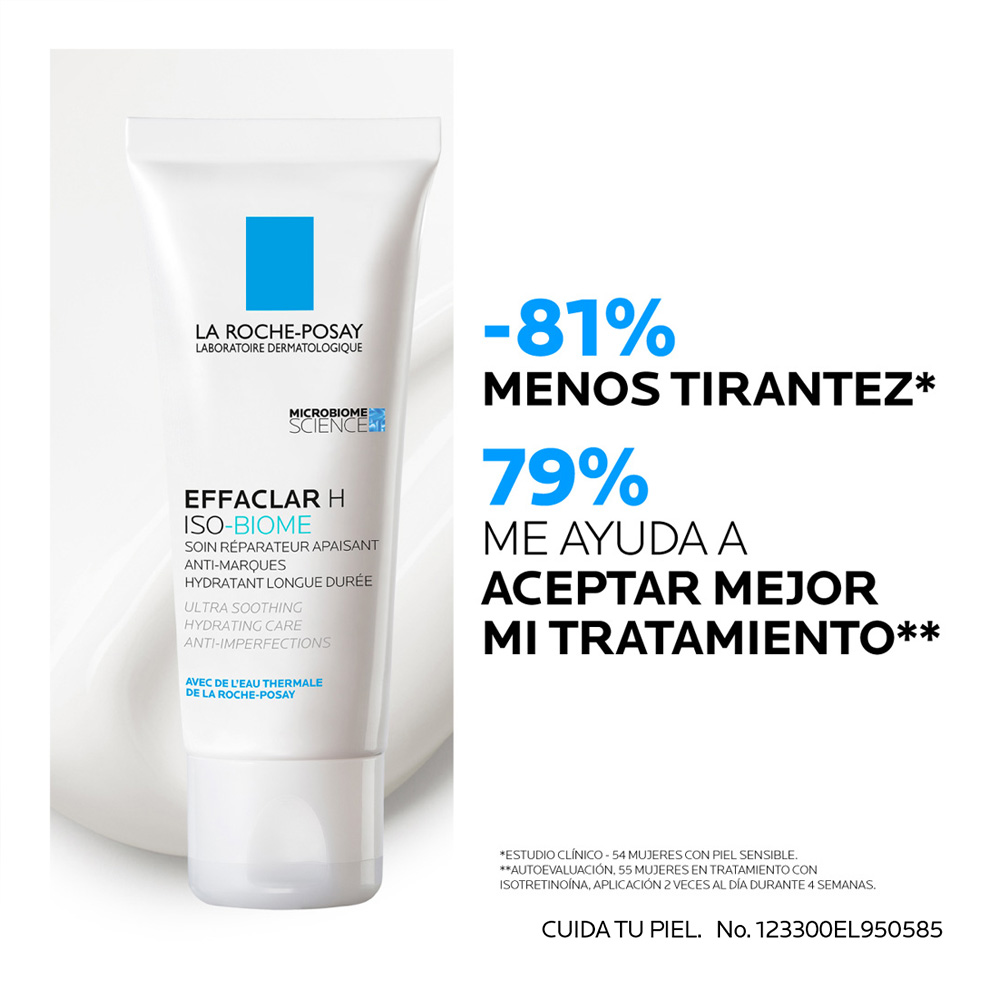 EFFACLAR H ISO-BIOME restaura la comodidad de la piel fragilizada por tratamientos secantes y ayuda a reducir las imperfecciones y las marcas. Humectante multiequilibrante y antiimperfecciones para una comodidad duradera en la piel. Está enriquecido con Vitamina B5, Escualano y Niacinamida para una eficacia hidratante y reparadora. La fórmula está asociada con extracto de Orellana y Procerad para reducir las imperfecciones sin sacrificar la hidratación.