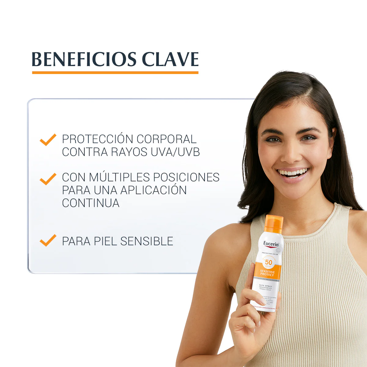 Es un protector solar en spray transparente sumamente eficaz, desarrollado específicamente para la piel corporal sensible. Su sistema de filtros UVA/UVB, fotoestable de amplio espectro, protege la piel de los daños inducidos por el sol.