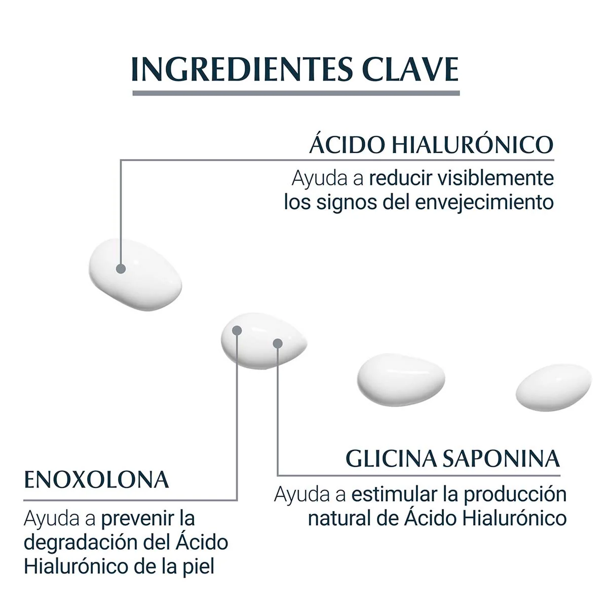 Fue formulado específicamente para combatir las arrugas denominadas «patas de gallo» que se forman en la delicada zona del contorno de ojos. La fórmula con una combinación de ácido hialuronico de peso molecular alto y bajo funciona tanto en las arrugas ya existentes como en las que están apareciendo. Excelente base de maquillaje, no comedogénico, ligeramente perfumado.