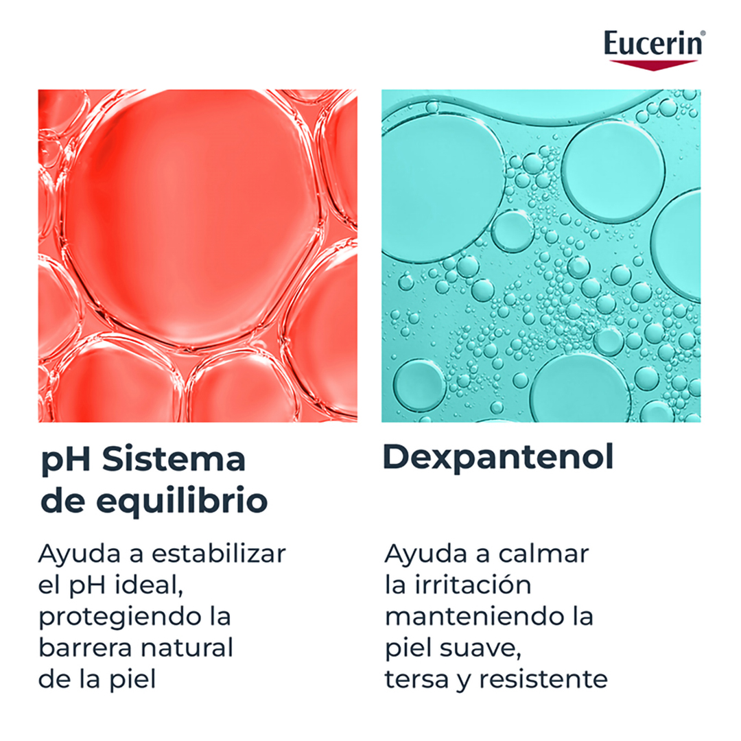 Forma una barrera protectora que mantiene la humedad y protege frente una posible irritación. Un ingrediente clave de muchos productos de Eucerin pH5 Skin-Protection es el dexpantenol, un ingrediente activo con capacidad demostrada para estimular la regeneración de la piel y el fortalecimiento de la barrera dérmica de protección. Todos los productos ayudan a restaurar y conservar el pH óptimo para una piel sana y estabilizar la película hidrolipídica que protege la capa externa de la piel.