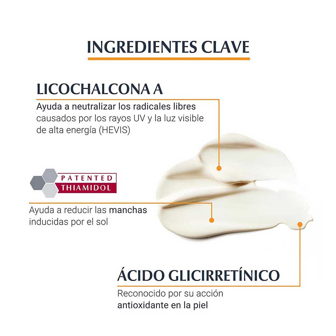 Es un protector solar facial diario para todo tipo de pieles que ayuda a prevenir la hiperpigmentación inducida por el sol. La avanzada tecnología espectral combina filtros UVA / UVB de banda ancha y fotosutables para obtener una protección UV muy alta con Licochalcone A para neutralizar los radicales libres causados por la luz UV y HEVIS. El protector solar anti-pigmento también incluye ácido glicirretínico, que es compatible con el mecanismo de reparación del ADN de la piel.