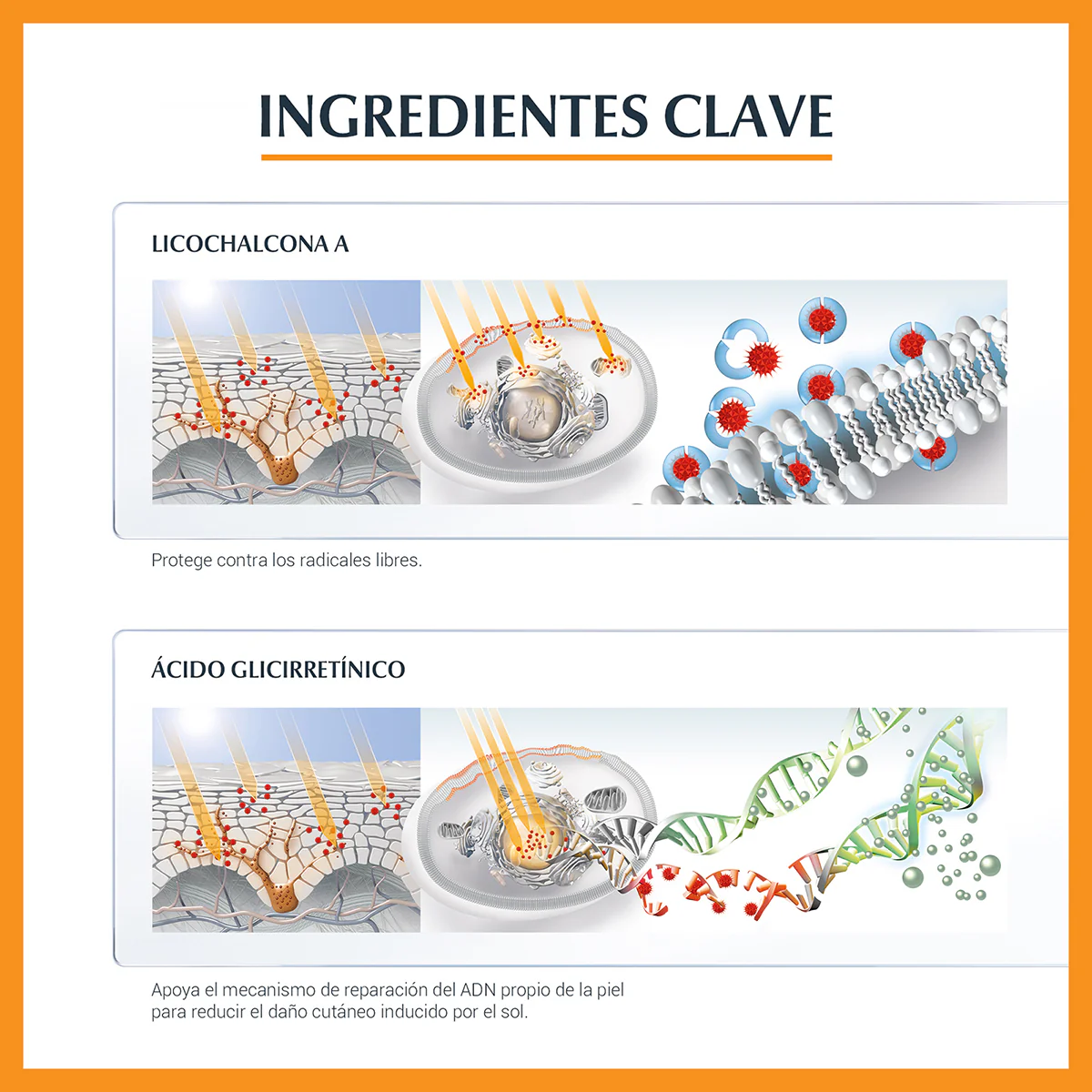 En segundo lugar, su combinación de licochalcona A y ácido glicirretínico brinda una protección celular biológica. La licochalcona A es un potente antioxidante natural que protege las células de la piel contra el daño ocasionado por los radicales libres, mientras que el ácido glicirretínico protege el ADN estimulando los mecanismos naturales de protección de ADN y reparación de la piel.