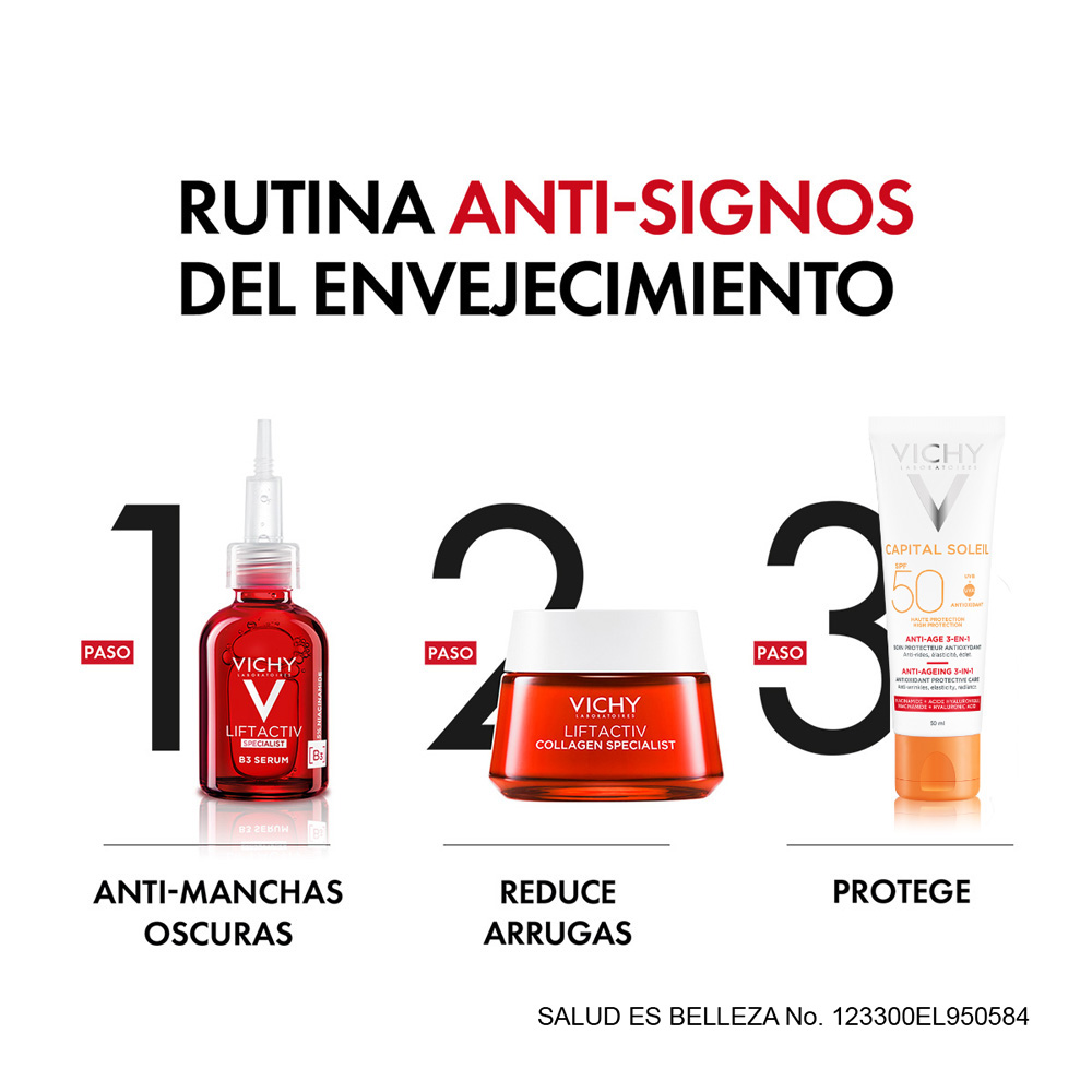 Alta protección solar que previene y corrige la aparición de los signos de la edad. FPS 50 con triple acción: 1) prevención del foto-envejecimiento. 2) Protege contra los rayos UVA y UVB. 3) Efecto anti-oxidante y protección contra agentes externos.