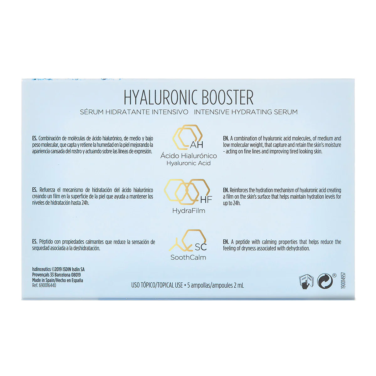 Solución facial en ampolletas con una avanzada combinación de dos moléculas de ácido hialurónico, de medio y bajo peso molecular, que ayudan a la piel a recuperar sus niveles de hidratación para conseguir una piel radiante.