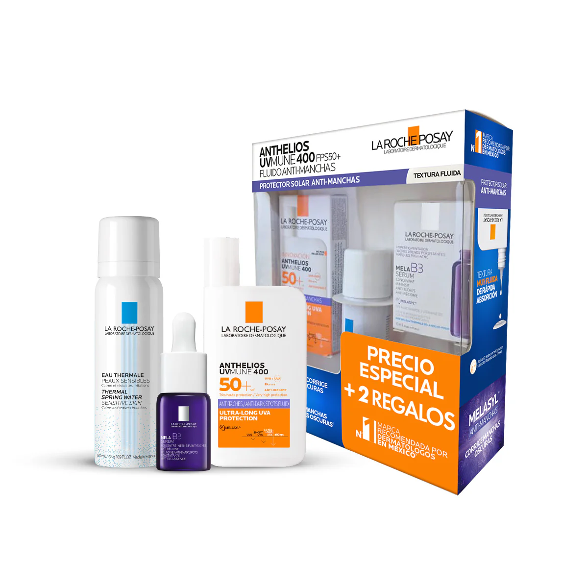 KIT-ANTHELIOS UV MUNE 400 ANTI-MANCHAS 50ML+AGUA TERMAL 50ML+MELA B3 SERUM 10ML