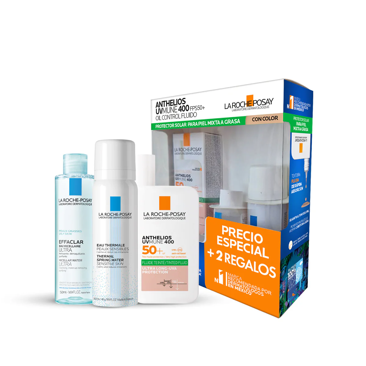 KIT-ANTHELIOS UV MUNE 400 OIL CONTROL FLUIDO C/C 50ML+AGUA TERMAL PREBIOTICA 50ML+AGUA MICELAR 50ML