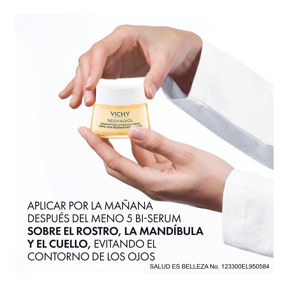 En la peri-menopausia, las variaciones hormonales aceleran los signos del envejecimiento de la piel que causan la pérdida de elasticidad, densidad y tonacidad de la piel. La Crema de Día Reafirmante y Redensificante mejora tu piel gracias a su composición con ácido hialurónico, proxylane y extracto de cassia que mejora visiblemente los signos de envejecimiento provocados por los cambios hormonales. Su potente combinación de activos ayuda a suavizar la piel mientras hidrata y unifica el tono. Todo esto con una textura única y la mejor fragancia. Redensifica, hidrata y mejora la elastisidad y tonicidad de la piel. La eficacia es nuestra prioridad en Vichy y, por eso, las fórmulas han sido clínicamente puntuadas por dermatólogos en mujeres con piel sensible durante la menopausia.