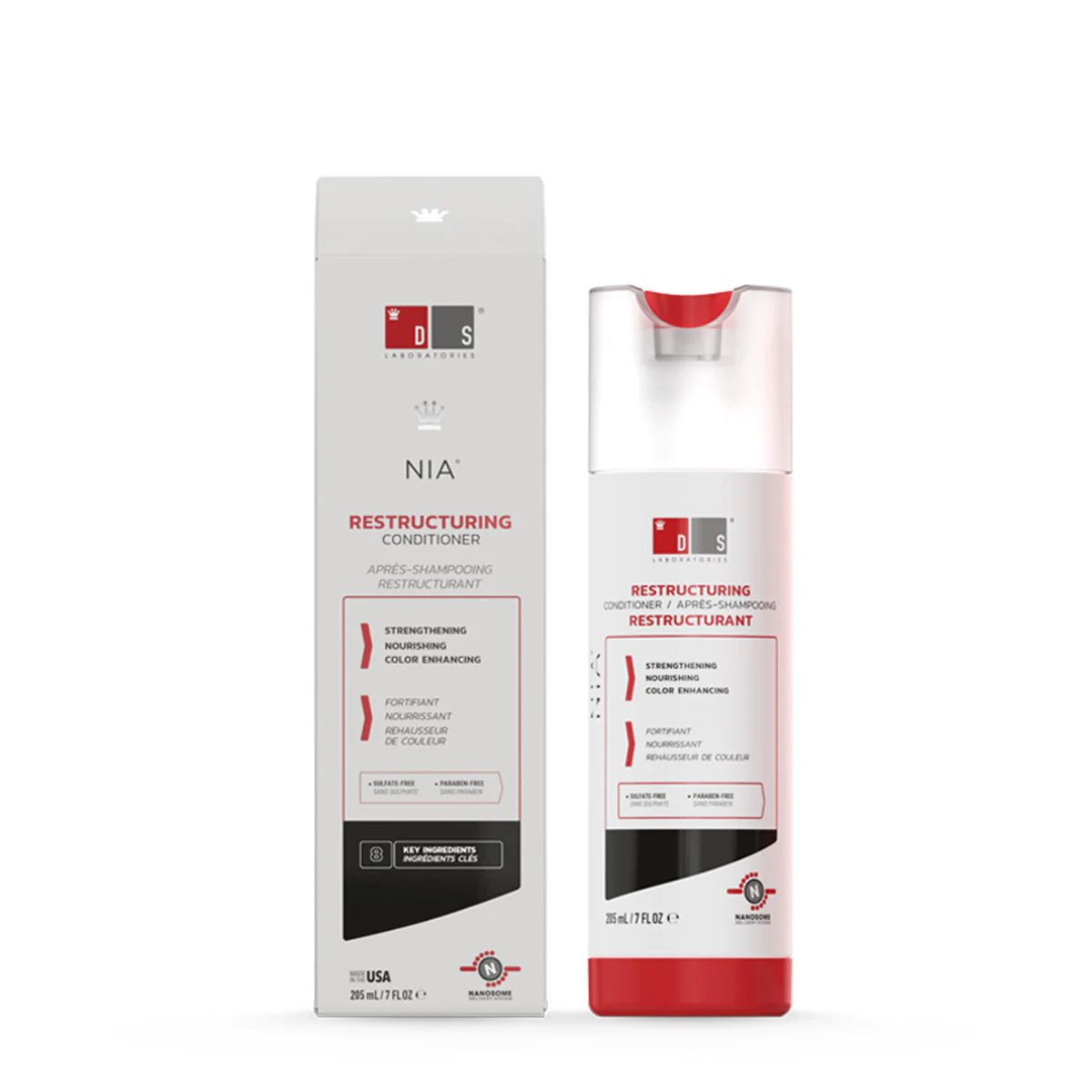 Nia Acondicionador reestructura, desenreda, repara, hidrata y fortalece el cabello dándole salud y vitalidad. Formulado con un exclusivo complejo reestructurante, repara las puntas abiertas e hidrata al cabello con lo que tendrás un cabello más suave, sedoso y con volumen. Protege el color de tu cabello al tiempo que lo repara de forma natural.