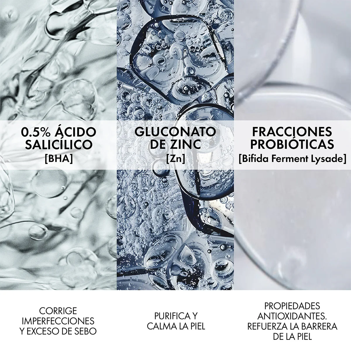 Reduce y previene la aparición de brotes gracias a su fórmula con ingredientes de origen natural enriquecido con minerales y probióticos, que elimina perfectamente las impurezas y el exceso de sebo.