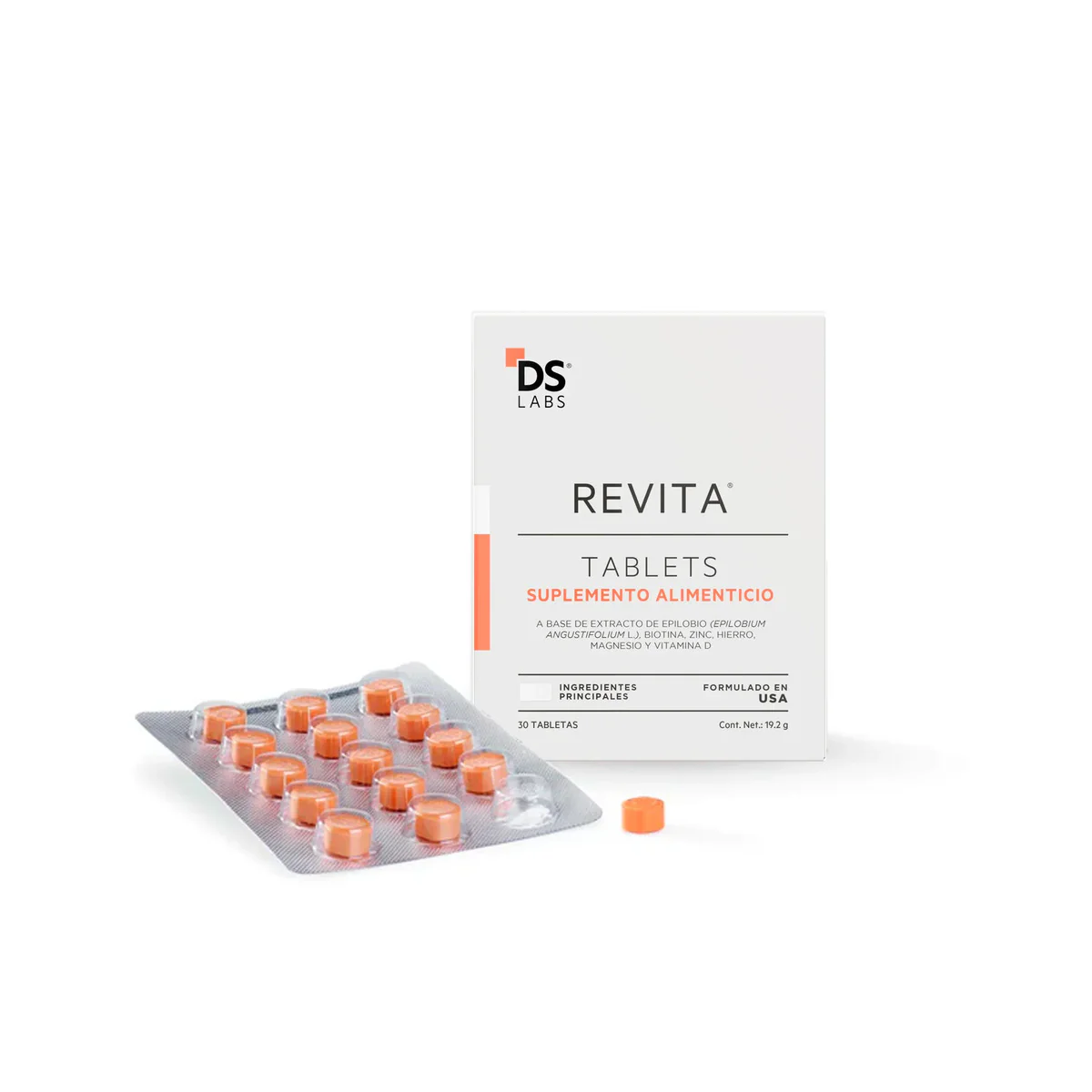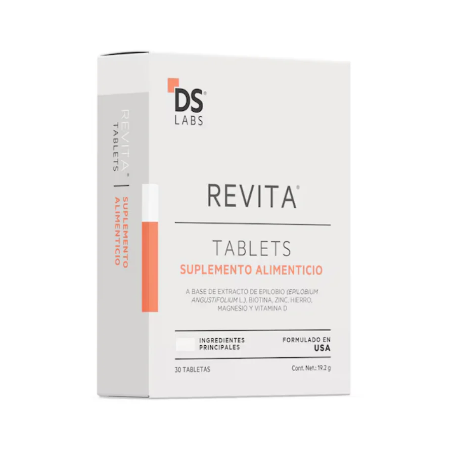 La fórmula patentada de Revita Tabletas contiene más de 10 ingredientes activos, entre los que se encuentran el zinc, que contribuye a la síntesis de proteínas y ayuda a proteger el cabello contra el daño oxidativo, la biotina que convierte los nutrientes en energía y contribuye al correcto crecimiento de un cabello fuerte, la queratina que proporciona fuerza y mejora la flexibilidad del cabello y el hierro que proporciona oxígeno a la raíz del cabello y ayuda a reducir su caída.