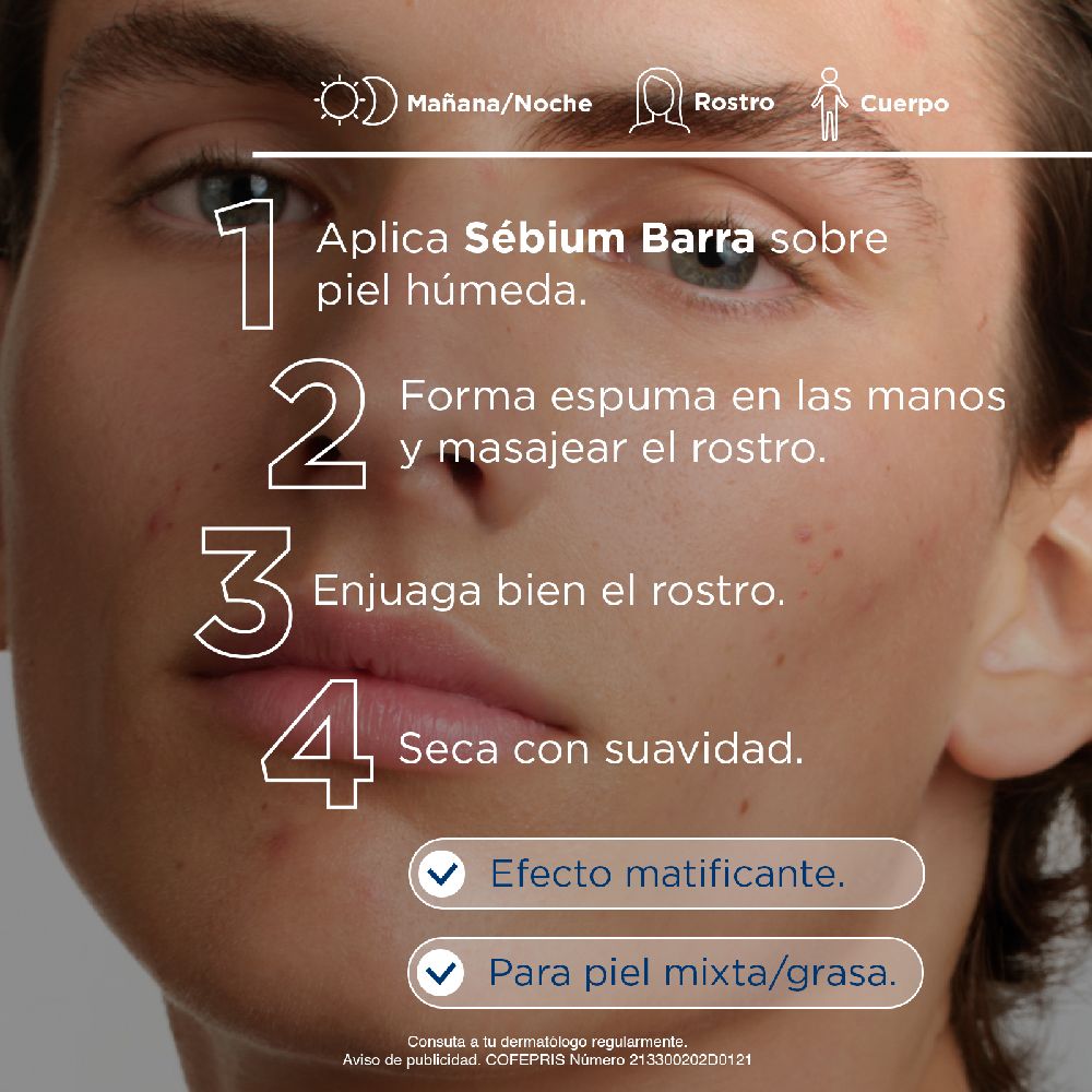 Limpia con suavidad, es una barra limpiadora que limita la formación de las imperfecciones gracias al complejo sebocorrector Fluidactiv® que fluidifica de manera biológica la calidad del sebo. Enriquecido con principios activos purificantes, sulfato de zinc y de cobre. Sébium Barra sanea la epidermis y limita la secreción sebácea.