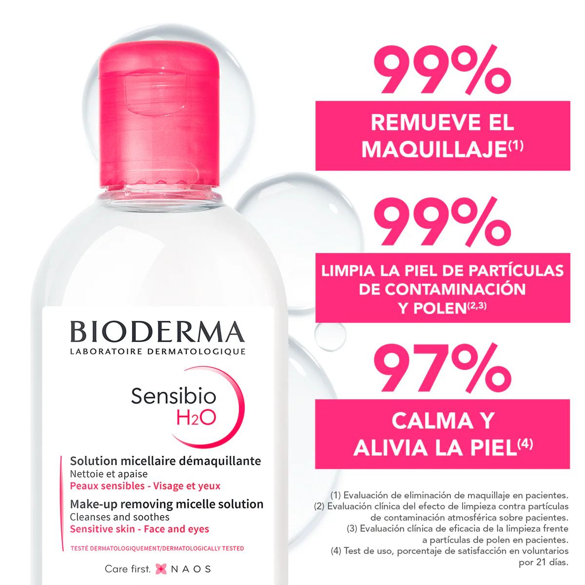 El agua micelar dermatológica que limpia, desmaquilla y calma.